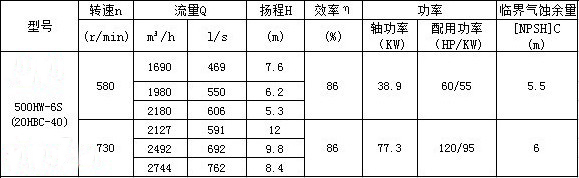 HW混流泵主要技術(shù)參數(shù)換算