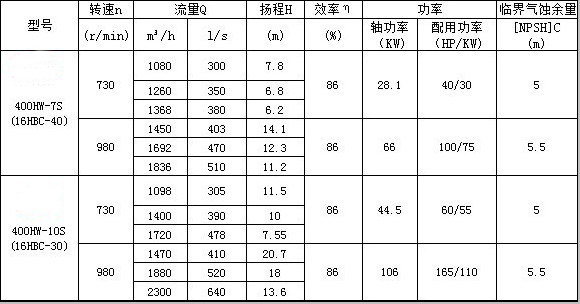 HW混流泵主要技術參數(shù)換算